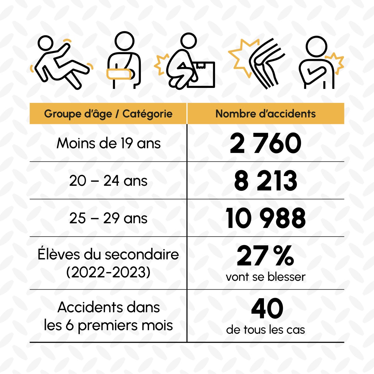 Lorsqu’on parle de la prévention chez les jeunes travailleurs, il faut aborder l’éléphant dans la pièce : ils sont très souvent victimes d’accidents du travail. En le disant simplement, les chiffres évoquent qu’environ 30 jeunes par jour se blessent au travail, selon l’Institut de la statistique du Québec. |