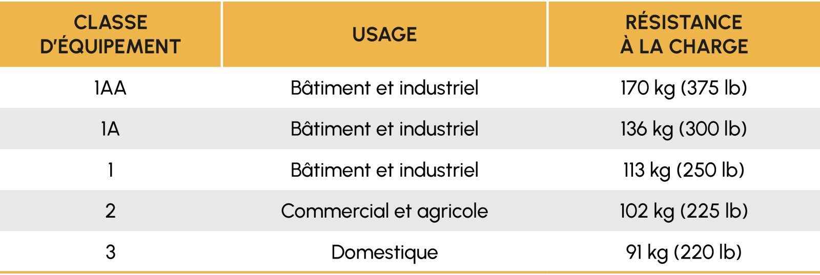 Tenir compte de la classification permet d’effectuer une sélection plus éclairée d’un équipement sécuritaire et conforme aux besoins du travail. Le choix d’un bon équipement, combiné à une inspection rigoureuse, permet de réduire significativement les risques d’accident.